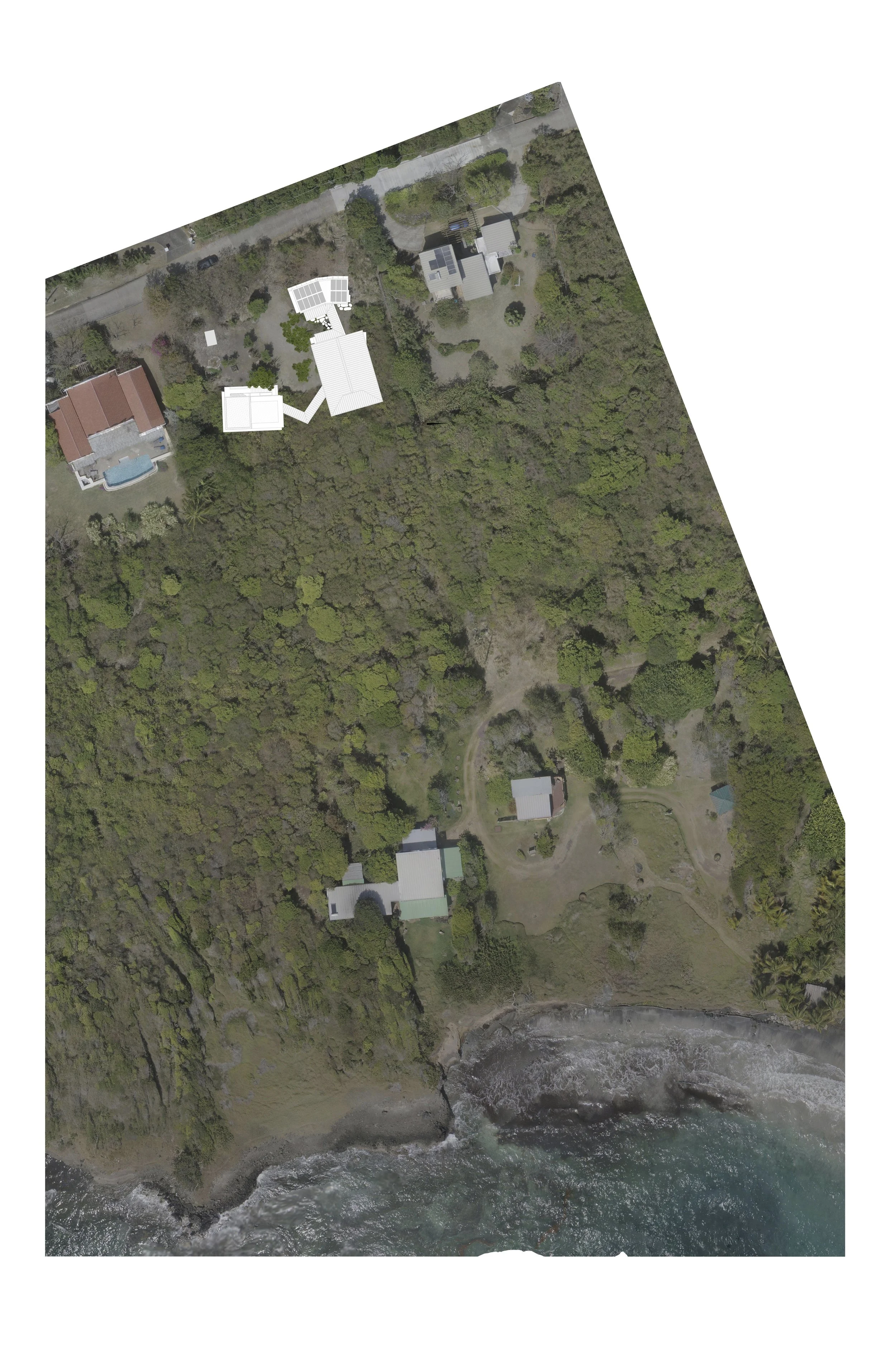 Set in the idyllic landscape of Grenada in the Caribbean, this temple-like residence is designed to blend seamlessly with its natural surroundings. Towering totem poles support a grand timber roof, resembling a temple and offering stunning views of the azure ocean. Underneath this expansive roof, open spaces for living, cooking, working, dancing, and gathering are designed to flow effortlessly, with a surrounding deck that almost touches the treetops. The private rooms are located in the basement, offering a more intimate connection to the forest, enveloped by the natural landscape.